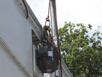 電機(jī)吊支架利用吊架臂將電機(jī)移到塔外進(jìn)行維護(hù)更換。