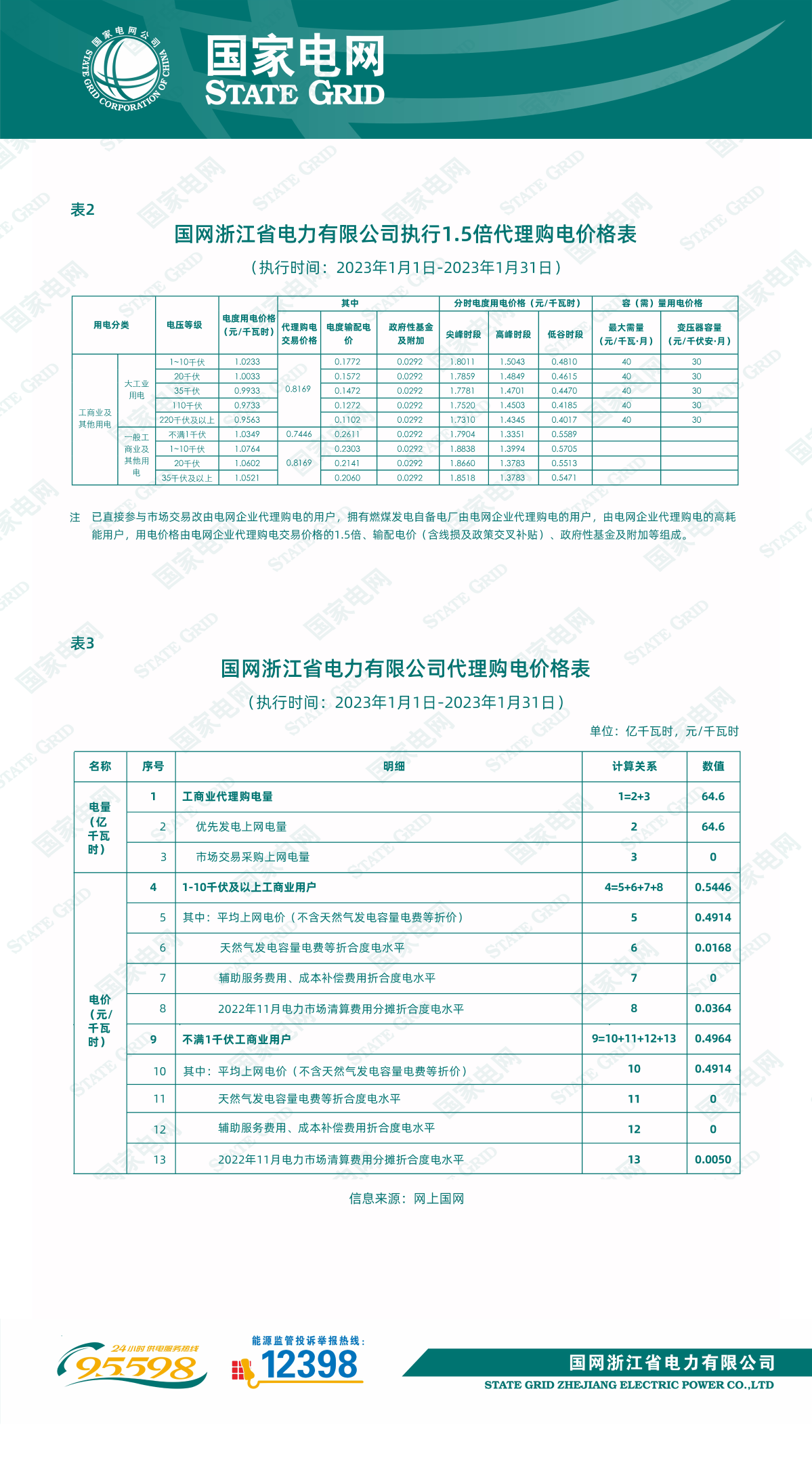 國網(wǎng)浙江省電力有限公司關于2023年1月代理工商業(yè)用戶購電價格的公告