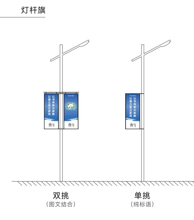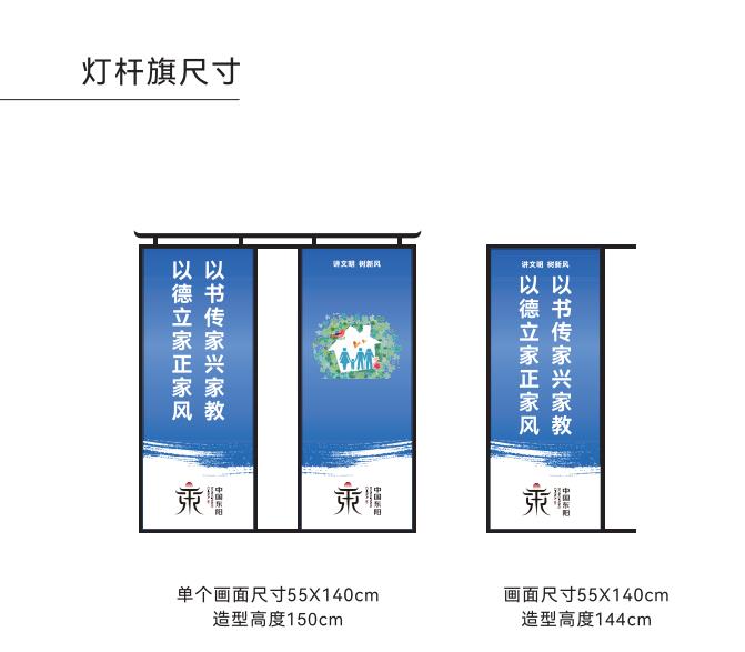 燈桿旗尺寸大小可按現場實際情況調整。街道、小區(qū)落款按實際填寫。