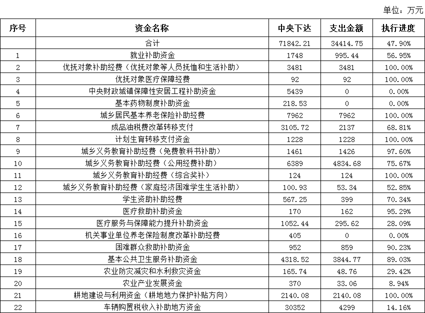 2025年7月直達(dá)資金分配情況(單位:萬元)