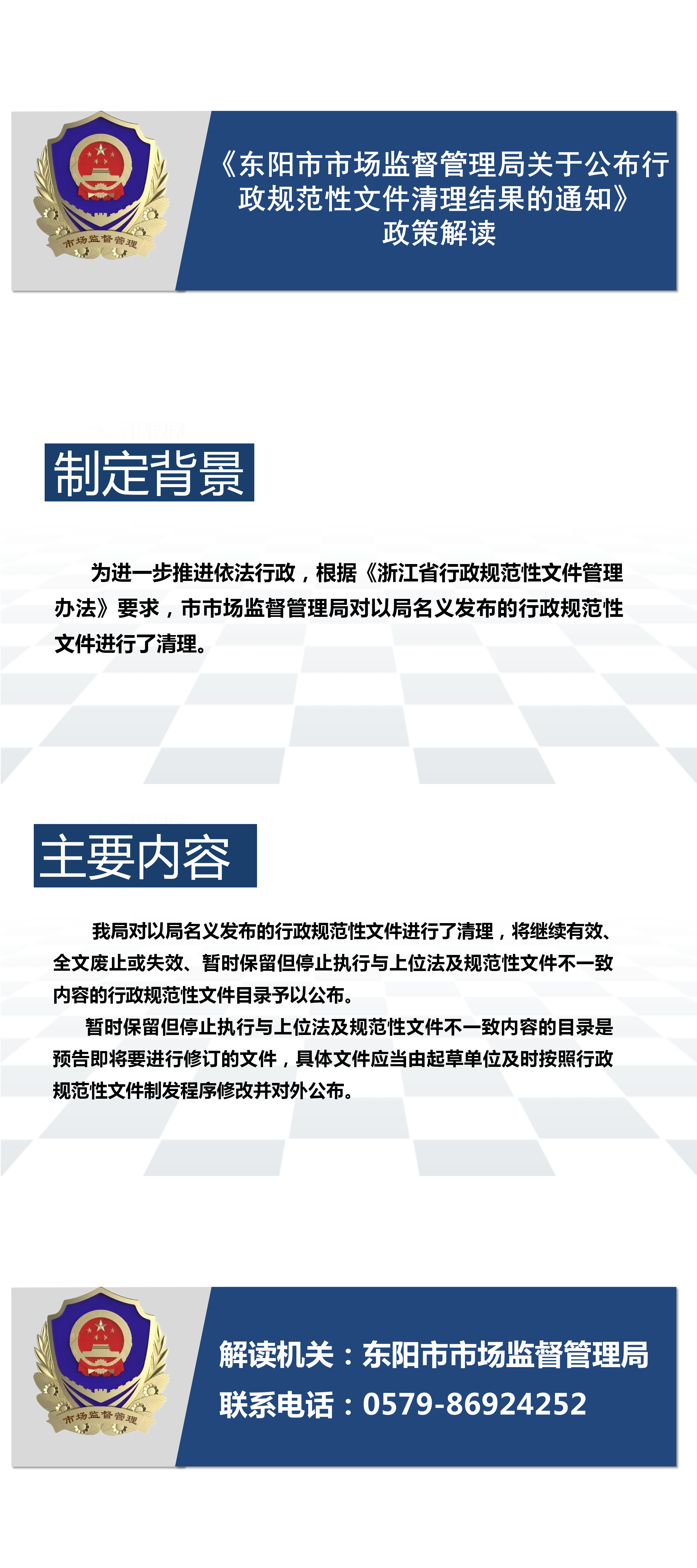 【圖解】《東陽市市場監督管理局關于公布行政規范性文件清理結果的通知》政策解讀