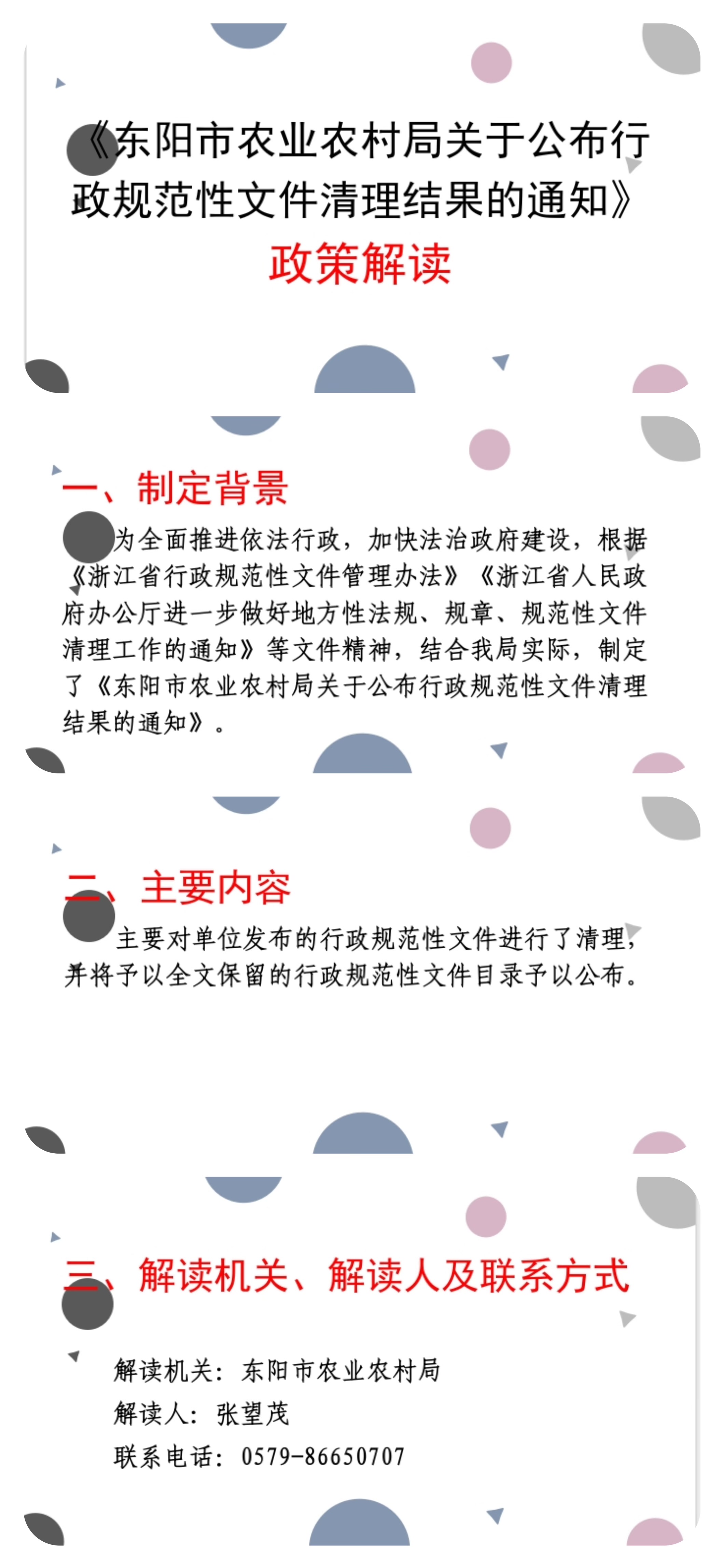 【圖解】《東陽市農業農村局關于公布行政規范性文件清理結果的通知》政策解讀