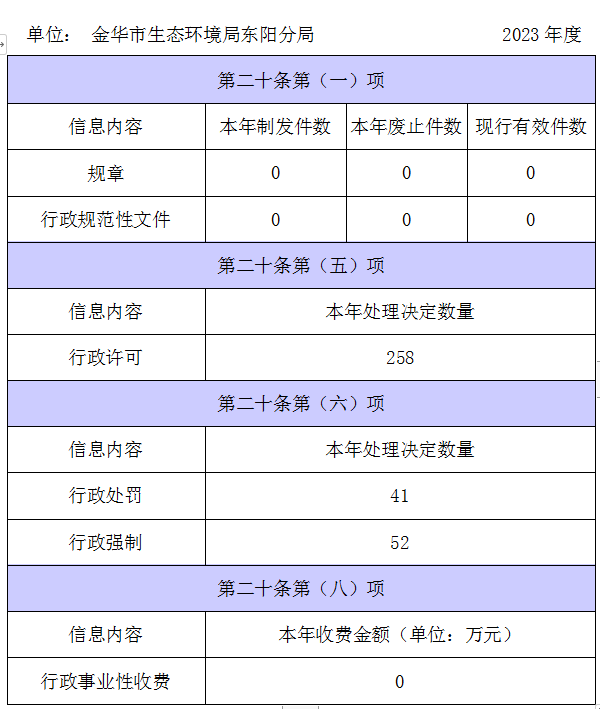 本年度報告是根據《中華人民共和國政府信息公開條例》(以下簡稱《條例》)、《浙江省政府信息公開暫行辦法》(以下簡稱暫行辦法)的有關規定要求編制。本年度報告中所列數據統計期限從2023年1月1日到12月31日止。如對本報告有疑問,請與金華市生態環境局東陽分局辦公室聯系(地址:人民路269號,郵編:322100,電話:0579-86656079,傳真:0579-86656087)。
