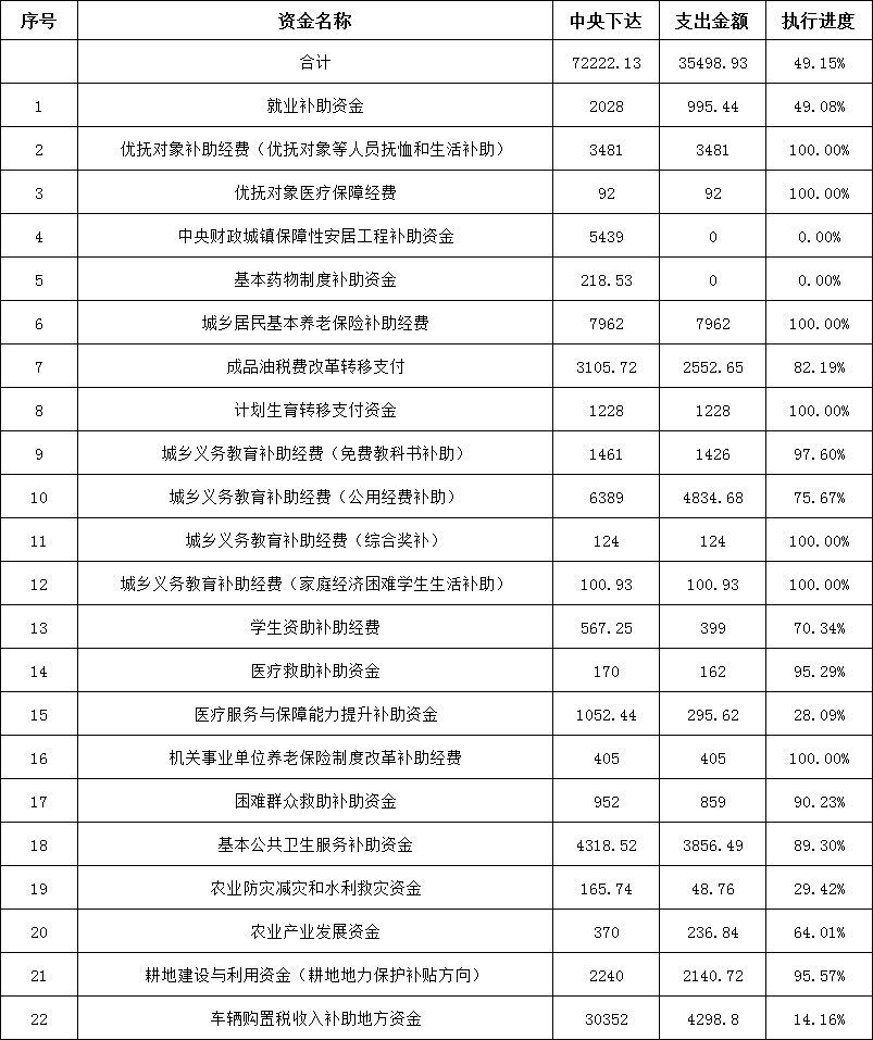 2025年9月直達資金分配情況(單位:萬元)