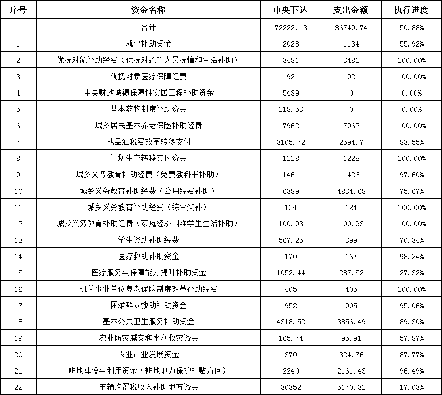 2025年10月直達資金分配情況(單位:萬元)