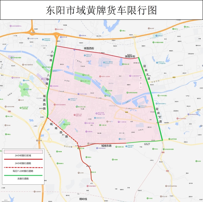 為切實(shí)緩解中心城區(qū)城市道路交通壓力,提高道路交通運(yùn)行效率,減少機(jī)動車排氣污染,根據(jù)《中華人民共和國道路交通安全法》第三十九之規(guī)定,結(jié)合當(dāng)前中心城區(qū)道路交通運(yùn)行實(shí)際,東陽市公安局交通警察大隊(duì)決定調(diào)整黃牌貨車、危化品運(yùn)輸車限行區(qū)域,現(xiàn)將相關(guān)管理措施通告如下: